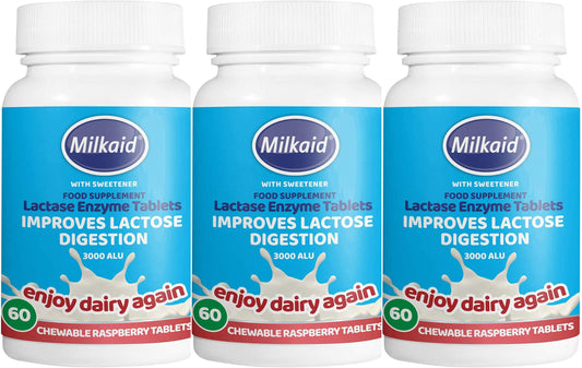 Milkaid Lactase Enzyme Chewable Tablets for Lactose Intolerance Relief | Prevents Gas, Bloating & Diarrhoea | Fast Acting Dairy Digestive Supplement | Gluten Free & Vegan | 120 tablets